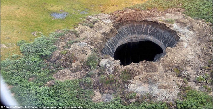 三年前,一个神秘的大洞出现在西伯利亚泰梅尔半岛,有 300 英尺深。从它三年前出现开始,这个洞已经变成原来的十五倍大。“ 根据先前尚未报导的科学数据,自从这个洞在 2013 年的爆炸中形成,在接下来的一年半里,它的尺寸已经增加到原来的至少十五倍。”( 来源 )