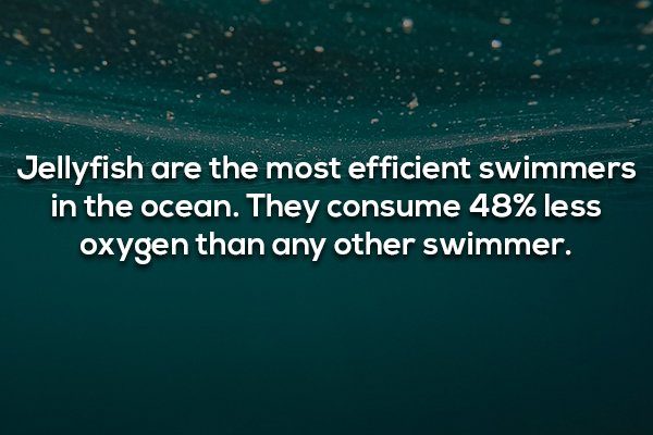 17. 水母是海中的最佳泳将。比起其他水中生物,它们的氧气消耗量少48%。