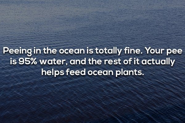 14. 在大海里尿尿是完全没问题的,你的尿有95%是水分,剩下的成分可以喂养水中植物。