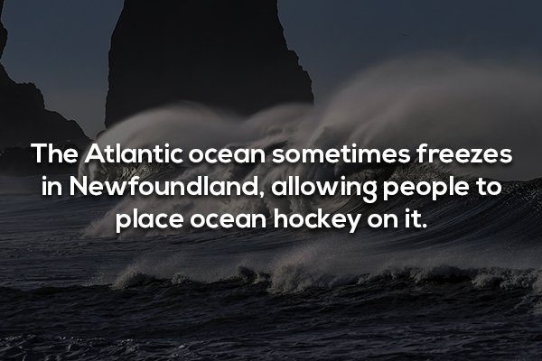 7. 加拿大纽芬兰一带的大西洋海水有时候会冻结,让人们可以在海面玩曲棍球。