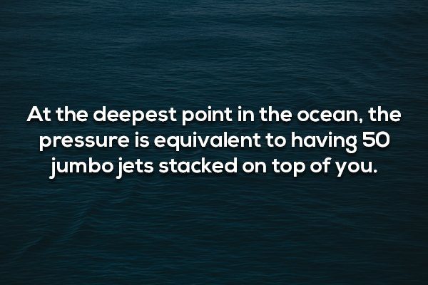 8. 海洋最底部的压力,大约等于把50架巨无霸客机堆在你头上。