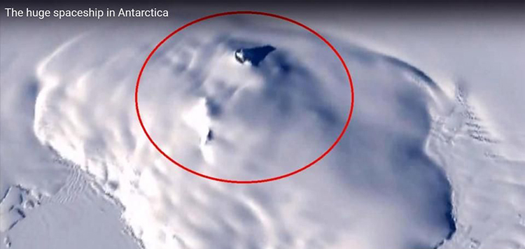 惊人消息指出,在图片中突出南极冰层的黑色物体,是高达1900英尺高的幽浮尖端。