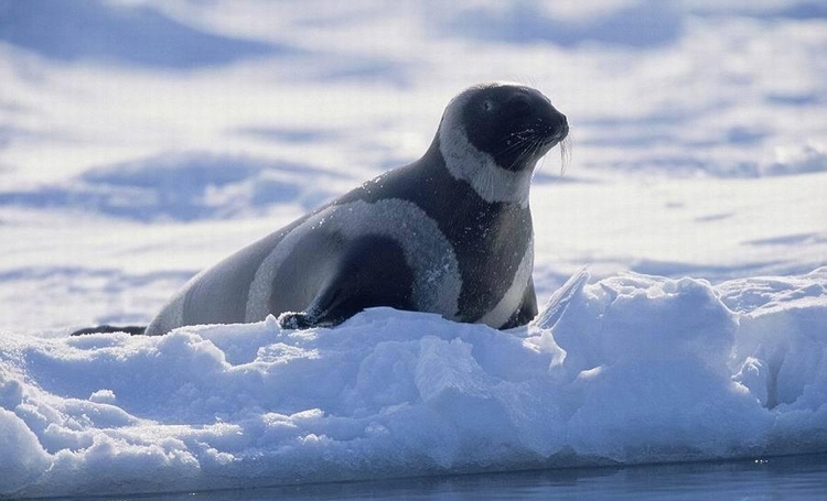 缎带海豹:人们很少能看到缎带海豹,因此无法进行深入研究,它们生活在北极浮冰上,在黑色身体上有4个白边结构。