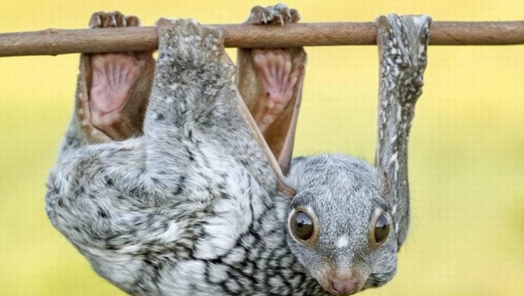 日本侏儒飞鼠:图中的这种口袋大小飞鼠生活在日本境内,薄翼膜可使它们在空中自由滑翔。