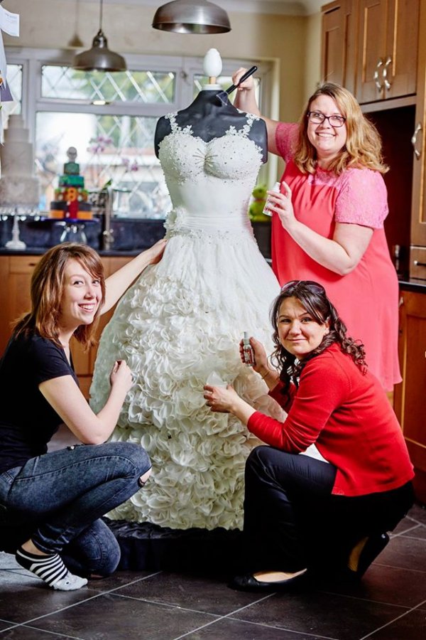 这件看起来错综复杂且带有蕾丝边的裙子,会让任何一位新娘在她的大喜日子那天成为全场注目的焦点。但令人惊讶的是,其实人们根本就无法穿上这件婚纱。因为它只是一个烘焙师们巧妙制作的蛋糕而已,上面所有漂亮的装饰和褶边实际上全部是白色的糖而已。不过它看起来如此逼真,以至于即便你从近距离拍摄的照片中,都无法辨别出这条裙子是真是假。