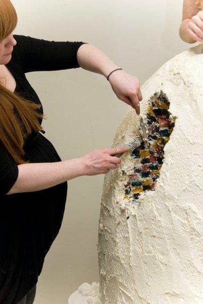 这个引人注目的甜点由得过奖的蛋糕雕塑家Sylvia Elba、艺术家Ilinka Rnic和Fun N Funky Cakes的创始人Yvette Marner联手打造。这三个富有创造力的人花费了三百多个小时才完成这个蛋糕,不过最后,她们表示这个重70公斤、高170厘米的超逼真蛋糕裙非常值得他们付出这么多时间。现在他们称它为世界上第一条可以吃的裙子。