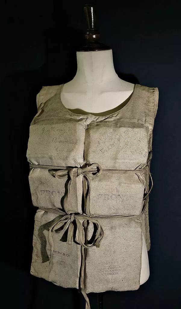 1. 这是当时船上救生衣的样子,而这件是当时泰坦尼克号事件的幸存者劳拉·马贝尔·弗兰卡帝利 (Laura Mabel Francatelli) 所留下的,上面还有搭乘同一艘救生艇的其他幸存者的签名。