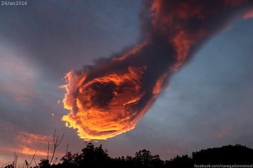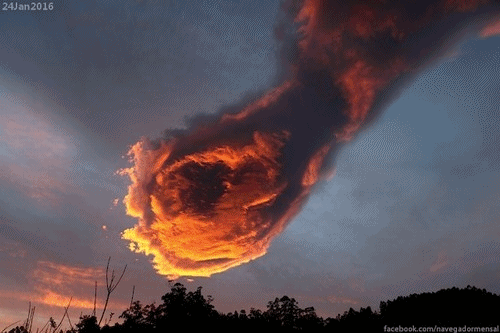 葡萄牙的一位民众,一大早出门上班的时候,发现天空中被朝阳晒得火红的朝霞,看起来就像是一个紧握的拳头,还燃烧着熊熊烈火。