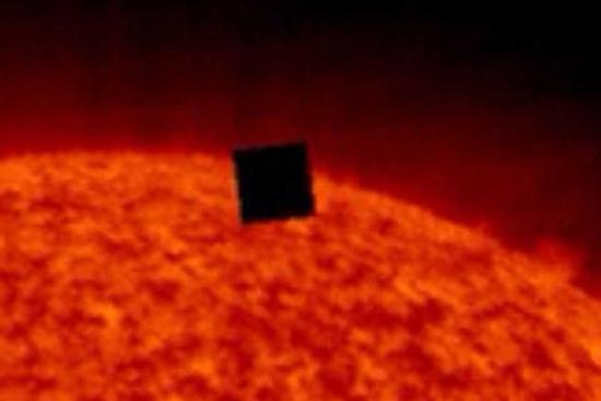 UFO猎人组织近来表示,他们多次在NASA公布的太阳照片上发现一个神秘的方块,对比来看,其面积要比地球还大。