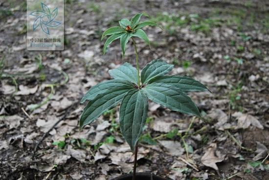 头顶一颗珠,珍惜濒危物种,国家三级保护植物,其顶上的红果叫“天珠”,地下的块茎叫“地珠”,均可入药,疗效奇特并有延年益寿之功效,故又名延龄草。