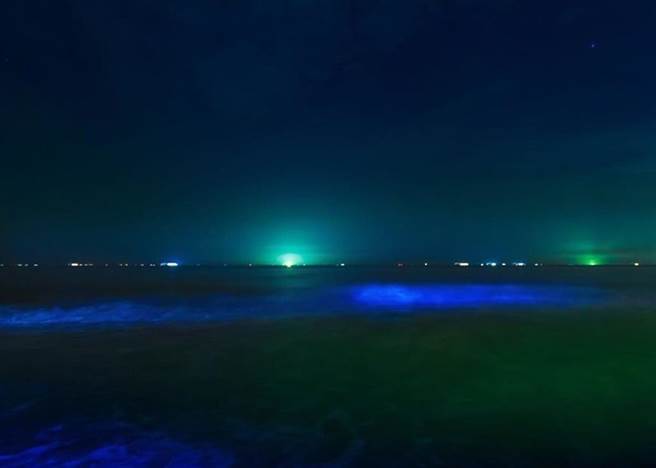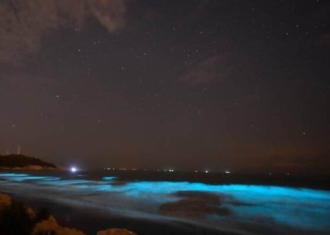 海上的夜光藻在受到骚扰下会发光,形成“蓝眼泪”现象。