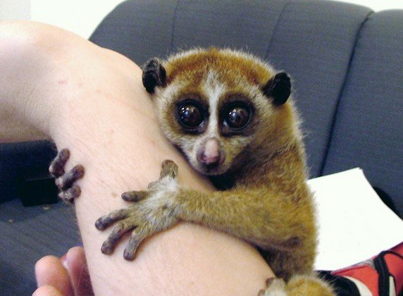 懒猴用这无辜大眼的表情看着你时,是不是觉得它很可爱、很无害呢?但其实懒猴是目前已知有毒的哺乳类生物,它们的腋下会分泌毒液,遇到危险时就会将毒液含在嘴里、在咬敌人的同时,也会让对方中毒。