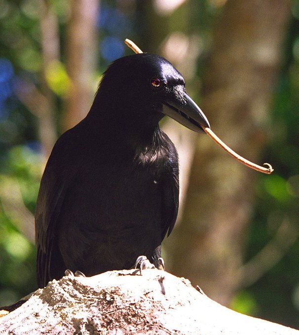 乌鸦的聪明可不只有这点程度而已。科学家观察到,位于南回归线附近的小岛新喀里多尼亚(New Caledonian),那里的乌鸦会制作和使用工具,将树枝做成带有倒钩或倒刺的形状后用来捕虫。