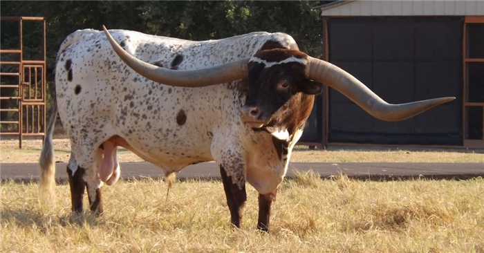 1. 这头牛的牛角长度比同类大很多。