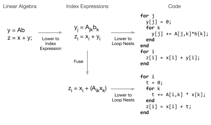 然而,在模拟期间,它不需要在两个规模之间来回穿梭。取而代之的是,它将写在线性代数的程式语言转换成图像程式语言。这在手工编码模拟(hand-coded simulation)上,有一个维持执行效率(runtime efficiency)的作用。