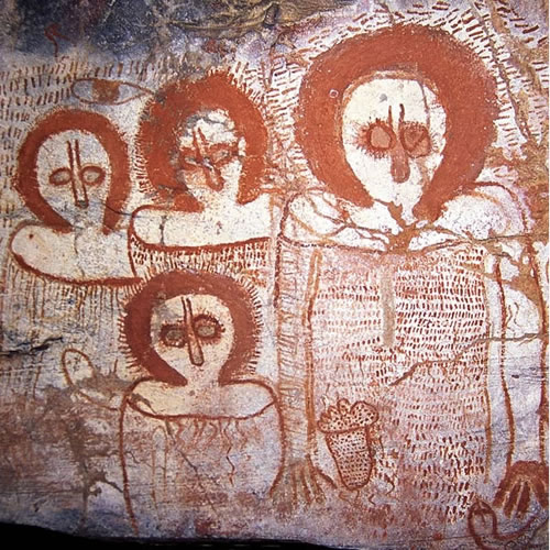 当地的区民称这些奇异的景像为“旺吉纳(wandjinas)”,他们是天空众生给人民带来文明和财产,奇怪的是,如世界各地古老文明一样,“旺吉纳”的符号是一条蛇,石壁画描绘出奇怪的人穿着凉鞋,这引起研究人员的注意,因为当地居民是赤脚的,石壁画中的人物描绘,另一个奇怪的地方是,人物的脚指头数量看起来像是有3到7个。