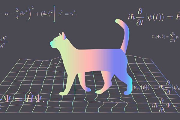 薛定谔方程及薛定谔猫示意图。