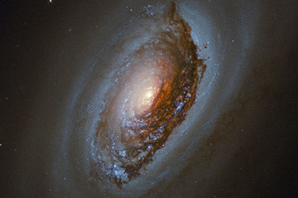 哈勃望远镜分享了一张星系NGC 4826的照片,因为它独特的形象——明亮的内核外面,包围着一圈壮观的深色尘埃环带,而被称做“黑眼”星系。