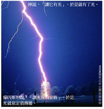 19 世纪中旬马克斯威创造了马克斯威方程式。大地充满了乙太;深渊的里面测不出地球的运动;爱因斯坦的灵运行在其中。爱因斯坦说,“让光速为定值”,于是光就依定值传播。爱因斯坦看见定速是好的;爱因斯坦将定速与乙太分开。