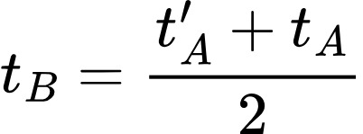 爱因斯坦的风暴就是他终于想出了可以避免循环逻辑的同步化假想实验:在 tA 时从 A 发出一道光线,当它在 tB 到达 B 时立刻让它反射回去,于 t’A 时到达 A;如果