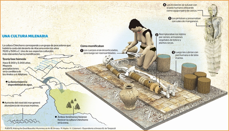目前有超过100具木乃伊开始出现“融化成黑色黏液”的情况。这些古早的木乃伊不是出自于古埃及人之手,而是一个采集与狩猎的文明“辛克罗”(Chinchorro),根据智利的人类学家帕罗(Sergio Medina Parra)表示,辛克罗人不像埃及人那样只为社经地位高的人制作木乃伊,而会为所有死者制作,这或许表明他们的社会相当民主与公平。而他们开始制作木乃伊的时间还比埃及人更早了两千年。