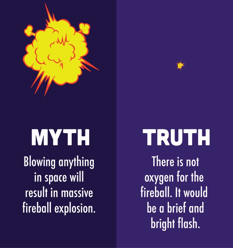 现实:太空中没有氧气,爆炸只会出现短暂的闪光。