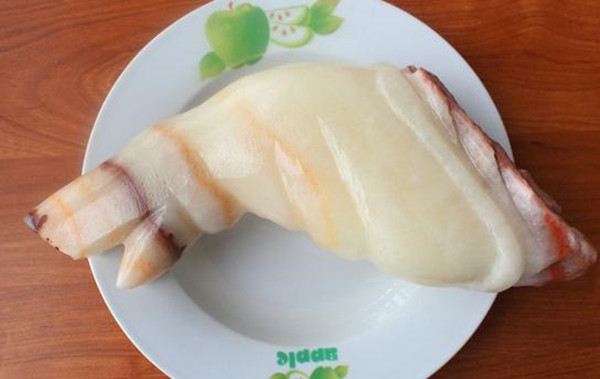 他特意找人来帮这块“猪肉石”加工,现在看起来又更像新鲜的猪蹄膀了啊!