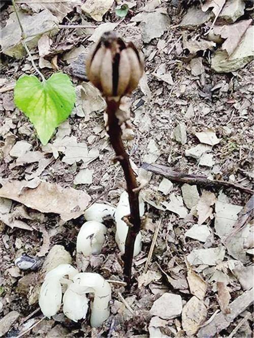 昨日,达州市林业与园林局高级工程师于长春通过对比和查阅资料,称这是水晶兰。但是,成都植物园高级工程师李方文在查看照片后,认为这是球果假水晶兰,系杜鹃花目鹿蹄草科、假水晶兰属腐生草本植物,多年生,全株无毛,干后变黑,肉质,或顶部稍有毛。生于海拔900-3100米的针阔混交林或阔叶林下。