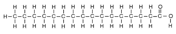 图一、脂肪酸。它具有一个长长的碳链和一个羧基。