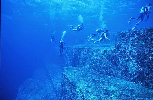 有些人主张日本外海底下的与那国岛(Yonaguni)海底遗迹是人造的建筑。