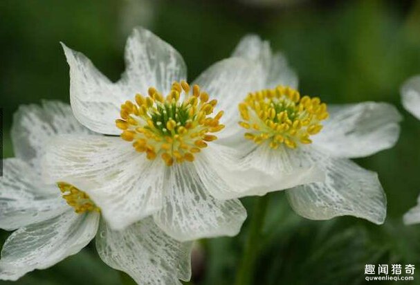 ▼此外,中国新疆云南一带也有类似生态的伏毛银莲花(Anemone narcissiflora var protracta),它的花瓣在沾湿以后也会变得澄澈剔透,甚至连当中的脉络也清晰可见,十分奇妙。