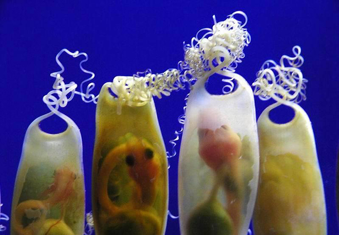 鲨鱼胚胎能够感受到危险接近:鲨鱼胚胎也能感受到附近潜在的危险,对于鲨鱼而言,它们最危险的时候就是处于卵囊之中。伴随着鲨鱼胚胎逐渐成长,卵囊封口开始打开,掠食者通过电场可探测到正在发育的小鲨鱼,当掠食者接近卵囊时,鲨鱼胚胎能够感知危险的到来,会封闭卵囊口,甚至停止呼吸,避免被掠食者发现。