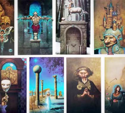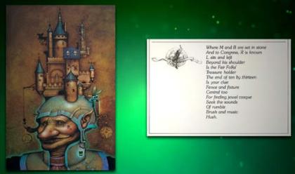 1982 年的时候,有一本书叫做“The Secret:A Treasure Hunt”(上图),这是一本藏宝书,作者是 Byron Preiss,他请了一位叫做 John Jude Palencar 的画家帮他画了 12 张图,而每一张图都搭配了一段诗,但是图和诗都各自被打散,所以我们并不知道哪张图要配哪段诗,但只要能将图和诗正确配对,就能够找出一个藏宝地点。
