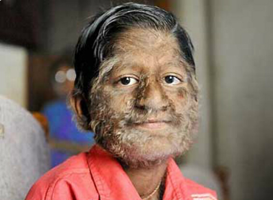 看起来彷彿树枝从人体皮肤长出来,实际上是疣状表皮发育不全。当然了,长出来的并不是树枝。这些东西是疣,而且阳光的照射会使情况加剧;这些疣好发于生命初期,稍后将会变成恶性病症。