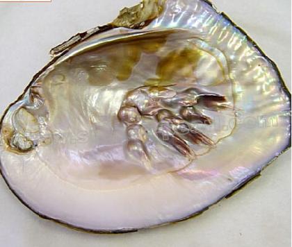 珍珠是怎么形成的呢?当外界的物质――沙粒或寄生虫进入牡蛎等贝类柔软的躯体,它们便分泌碳酸钙与珍珠母将不受欢迎的“入侵者”包裹起来,这种包裹不是一次完成的,贝类每天分泌约3-4次,每次覆盖涂满的厚度仅0.5微米,就这样日复一日层层包裹,至少两年以后才会最后形成各种颜色的珍珠。这其实是贝类对入侵者的一种自令人惊叹的防御机制,贝类自我保护身体的行为,却让人类获得来自大自然的一件珍贵的礼物。