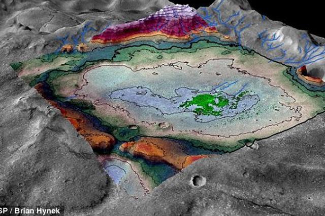 通过火星数字地形测绘和周围矿物学分析结果,火星在36亿年前具有非常庞大的海洋和湖泊,当时火星被认为是温暖的,而且能够维持大量的地表水。行星学家认为我们的太阳系诞生于46亿年前,而地球上形成水环境和早期生命的时间也在30多亿年前,几乎和火星的温暖环境处于同一时期。科罗拉多大学博尔德分校的研究人员布莱恩-哈尼克认为这是一个历史悠久的火星湖泊,几乎处于火星具有湿润环境的时间上限。