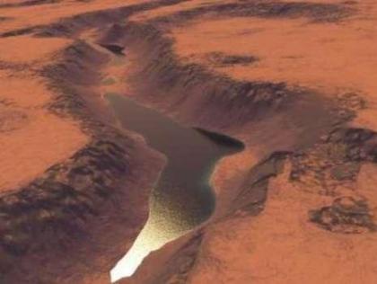 这些河道有个特点,即都与陨石坑相连。最近,一位荷兰科学家对其中的一个陨石坑的资料做了深入研究。与这个陨石坑相连的,是一条宽10千米、深2千米的巨大河道。他计算了下,要想在火星上蚀刻出这么一条河道,需要在不到1个月的时间内,流过差不多9万立方千米体积的水。