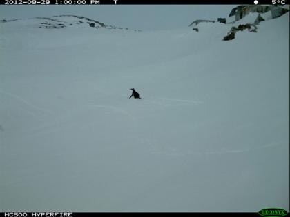 科学家们设置的远程相机一年之中进行着不间断的监视,这让科学家们有机会捕捉到那些很容易被错过的事件,比如在冬季的企鹅栖息地中出现了一些鞘嘴鸥的身影。这些食腐鸟类生活在企鹅群落中,但一般认为它们会在冬季迁徙到南美洲过冬,而不是留在南极。