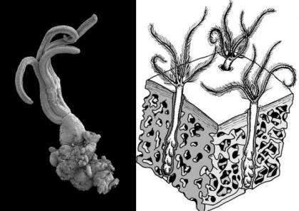 科学家于2002年首次发现它们的存在,从那以后科学家们就不断地发现新品种的食骨蠕虫(也被称作僵尸蠕虫),南极洲的寒流中常常见到某些食骨蠕虫,有些蠕虫长得像鼻涕花(英文snot flowers,双心皮草被称作流鼻涕,不知道是不是这里所说的鼻涕花)。