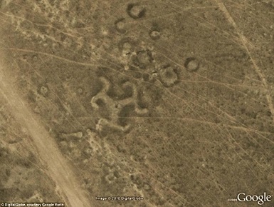 这里的地画图样形形色色,有许多十字架,也有许多圆圈,其中还有“卐”的符号。我们在印度教寺庙、挪威古石雕都能找到相同的符号,它遍及世界各个考古遗址;在古代“卐”有许多不同的诠释,但绝不同于现今的负面意涵。