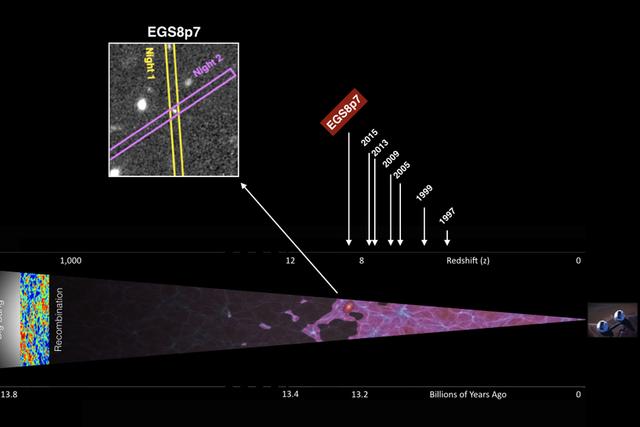 这一过程被称为宇宙再电离,莱曼-阿尔法发射线让宇宙变成可见的,而不是昏暗的。科学家发现EGSY8p7星系内的发射线有点特别,这里的氢消耗速率更快,对此的解释是星系内新生恒星的数量较为庞大。因此对EGSY8p7星系的研究有助于我们了解大爆炸后的宇宙是如何进行演化的。
