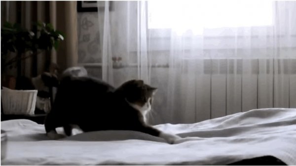 猫厌倦静止不动的时候,会通过跑来跑去来抵抗无聊。人类最轻微的举动,也是一粒灰尘陷入了一束光中都能让它们炸毛。