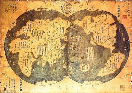 业余历史学家蒙兹尔提出的一项富有争议的假设认为中国人在哥伦布前70年便发现了美洲新大陆。他的假设立基于18世纪印刷的中国航海家郑和1418年绘制的一幅地图,地图展示了新大陆的一些细节。蒙兹尔指出:哥伦布发现新大陆是一个充满虚幻色彩的传统故事,只是一个故事而已。