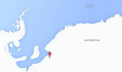 图中标注区域是南极洲发现外星人飞船的具体位置,实际上该照片拍摄于2012年2月15日。