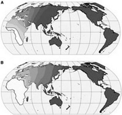 为了解释这种现象,他将群体遗传学的研究思路引入作为对比。生物学家们发现,人类遗传多样性是以非洲某地作为中心,向外逐渐降低的,而非洲是现代人类(智人或新人)的发源地;这便是所谓的“建立者效应”。