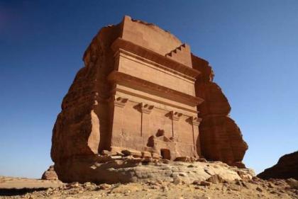 这建筑原文为Qasr al-Farid,意指“孤寂的城堡”,建于公元一世纪,即纳巴泰王国 (Nabatean kingdom) 的时代,该处有上百个类似的遗址,会让人联想到现今约旦地区的雕刻之城佩特拉 (Petra)。