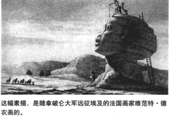 关干狮身人而像的鼻子还流传着与拿破仑有关的一个说法。当年拿破仑远征埃及,来到古萨金字塔群,他下令炮轰狮身人面像,想找到进人大金字塔的秘密通道,结果拿破仑的士兵把狮身人面像当做练习的靶子,狮身人而像的鼻子就在试射中给轰下来了。这一说法并不真实,从拿破仑留下的日记和回忆录来看,拿破仑并非只是一介武夫,他从小就对历史感兴趣。1798年率兵出征埃及时,他就带了一支近两百人的科学艺术考察团,其中就包括一些历史学家和考古学家,从而留下了让学者和毛驴走在队伍中间的名言。
