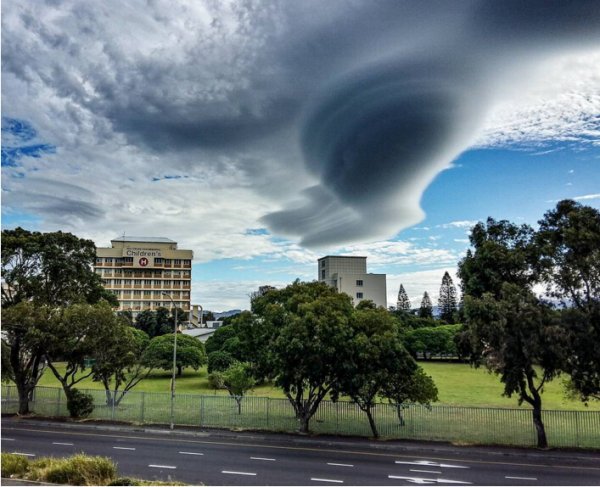 这些炫酷的形成物叫做“荚状云”,其圆形外观好像隐形眼镜镜片一般,并且它们是完全人畜无害的。荚状云是一种山帽云,形成于高海拔地区,通常贴近大山旁,例如开普敦的桌山。
