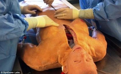 Synd艾薇er每条人造肌肉、肌腱、神经还有器官都与活体的组织功能完全吻合,不仅如此,他还有额外的控制功能,能供操作大体的动作。这也确实是有史以来最复杂的手术模拟器。