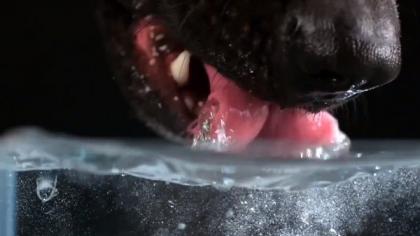 影片中用超慢速播放狗喝水,只见狗的舌头瞬间卷舌,宛如一个“大汤勺”,将大量的水舀起来放进口中。对此,许多网友表示好惊讶,“长知识了”、“感觉好好喝”;还有人说,“我真的只是看40秒的狗喝水吗”。